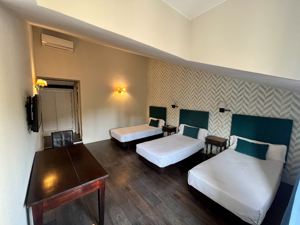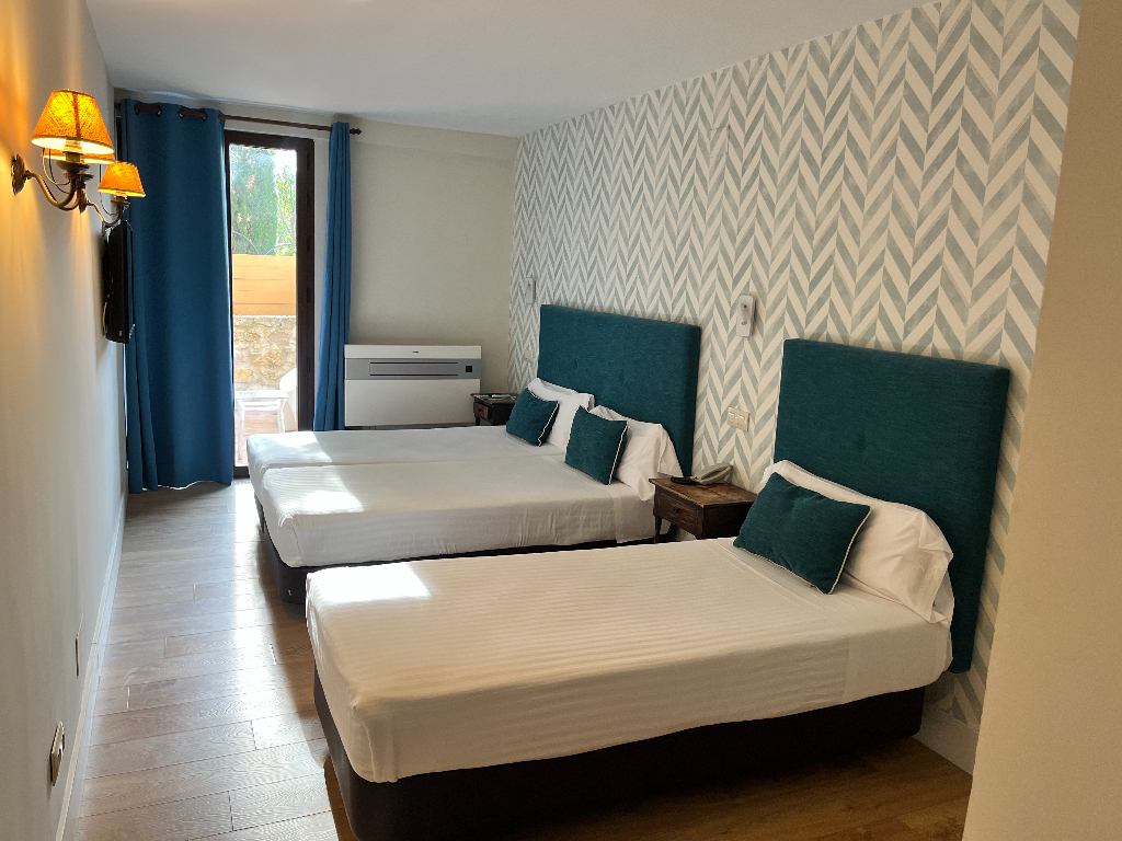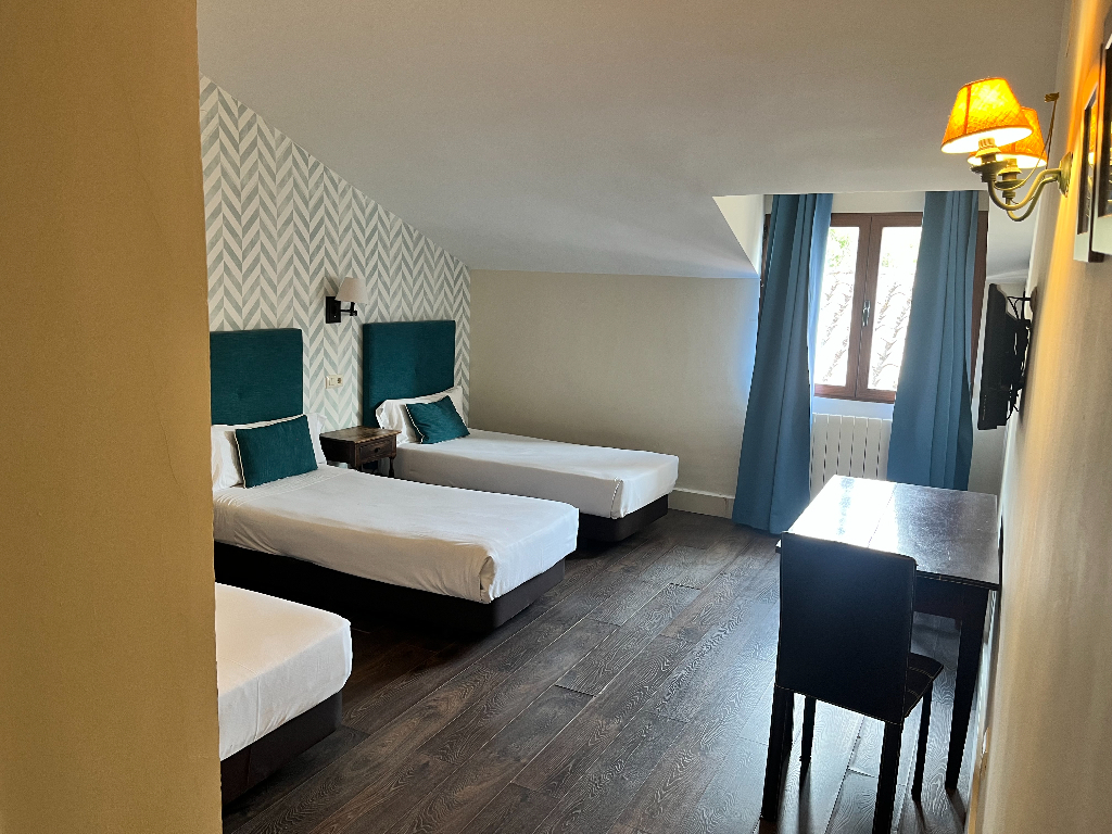 Avec des plafonds en bois et une vue sur la Hoz del Huécar ou la sierra, toutes les chambres, conformément à la catégorie de l’hôtel, peuvent accueillir jusqu’à trois personnes et disposent d’une salle de bains complète. Elles sont équipées de trois lits individuels ou d’un grand lit plus un lit individuel. Service en chambre jusqu’à 23 h.