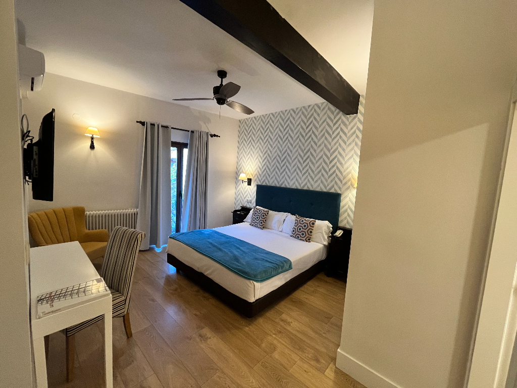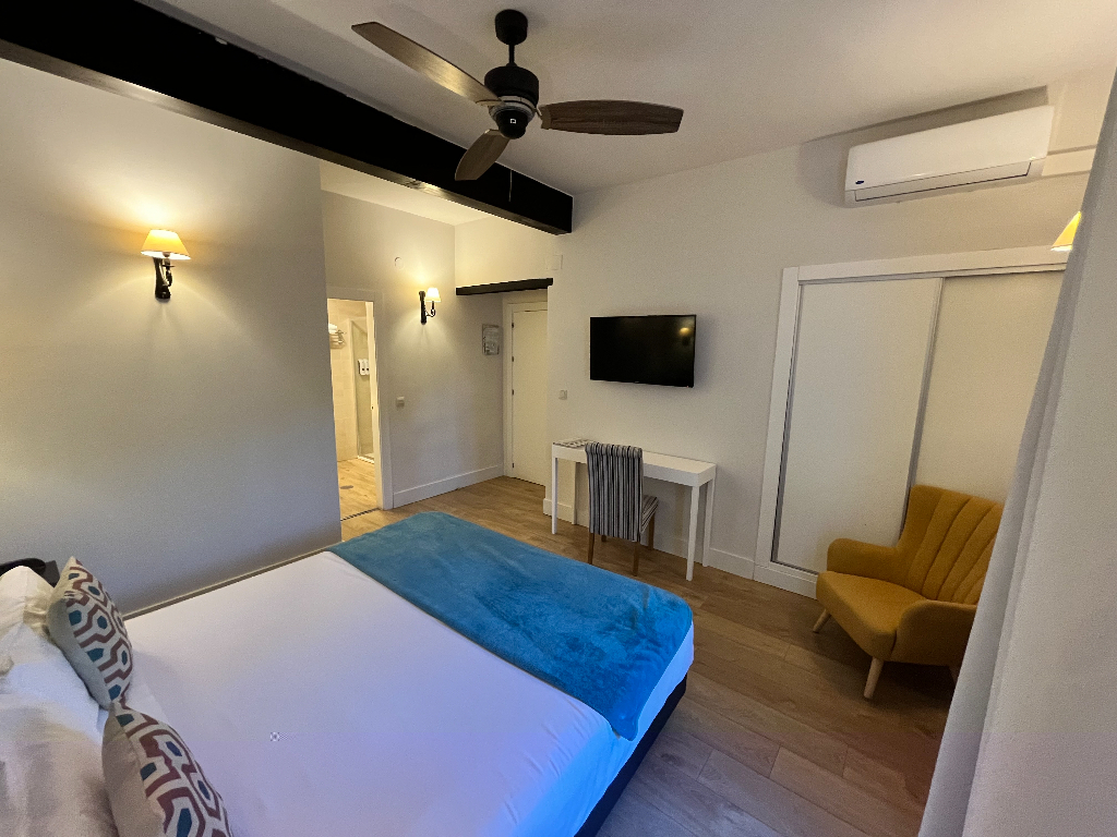 Habitaciones íntegramente remodeladas. Disponen de cama de matrimonio de 150 ó 190cms. Incluyen TV de pantalla plana, baño de diseño, calefacción central, climatizador y minibar de pago (Consultar suplemento).
